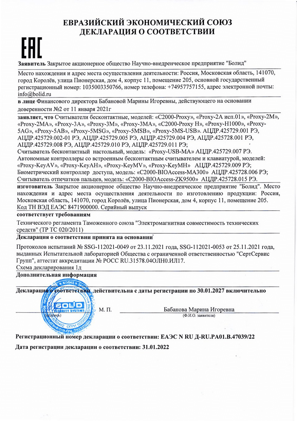 ПроизводительBOLID