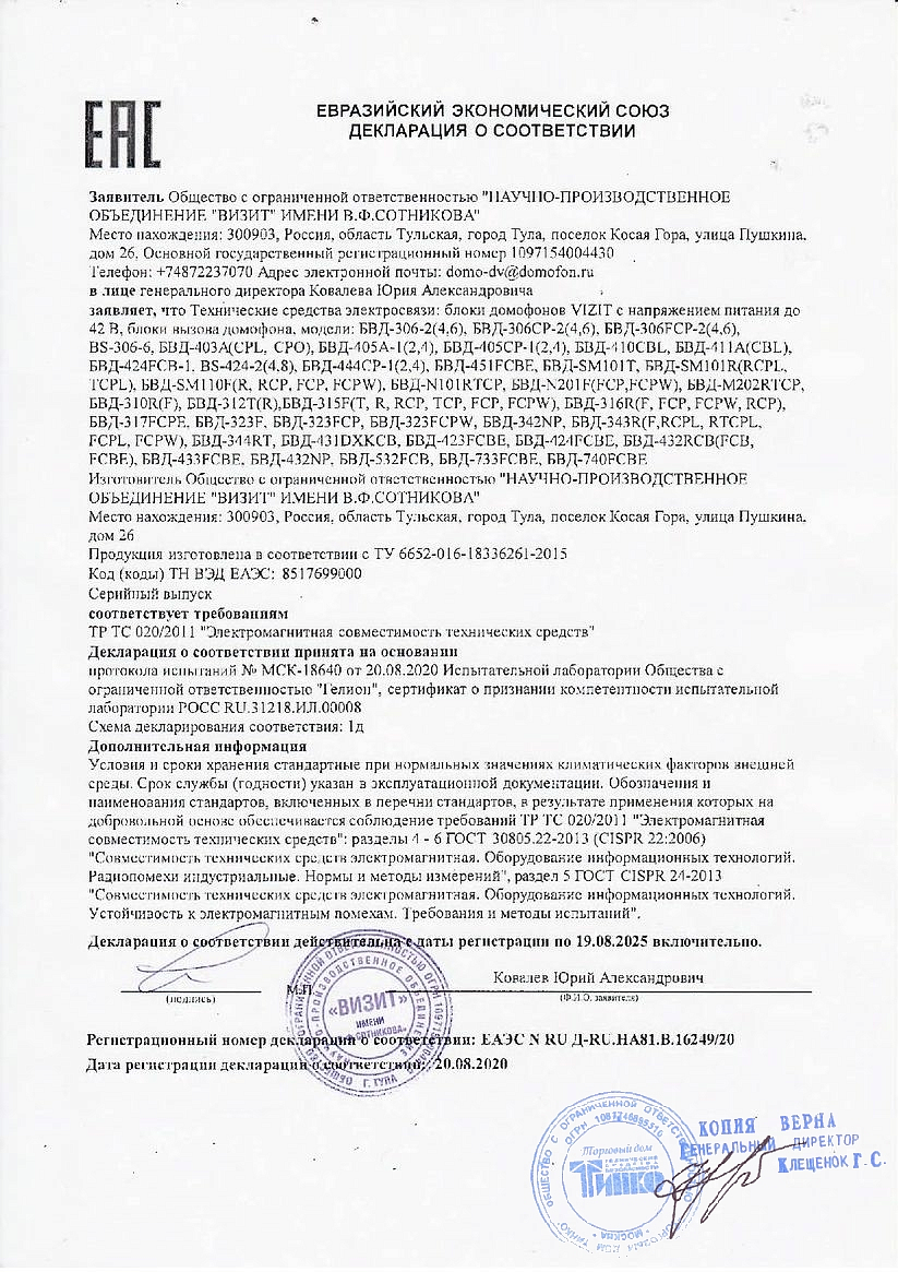 Блок вызова БВД-403CPO Vizit купить в Екатеринбурге в компании ВИПАКС.