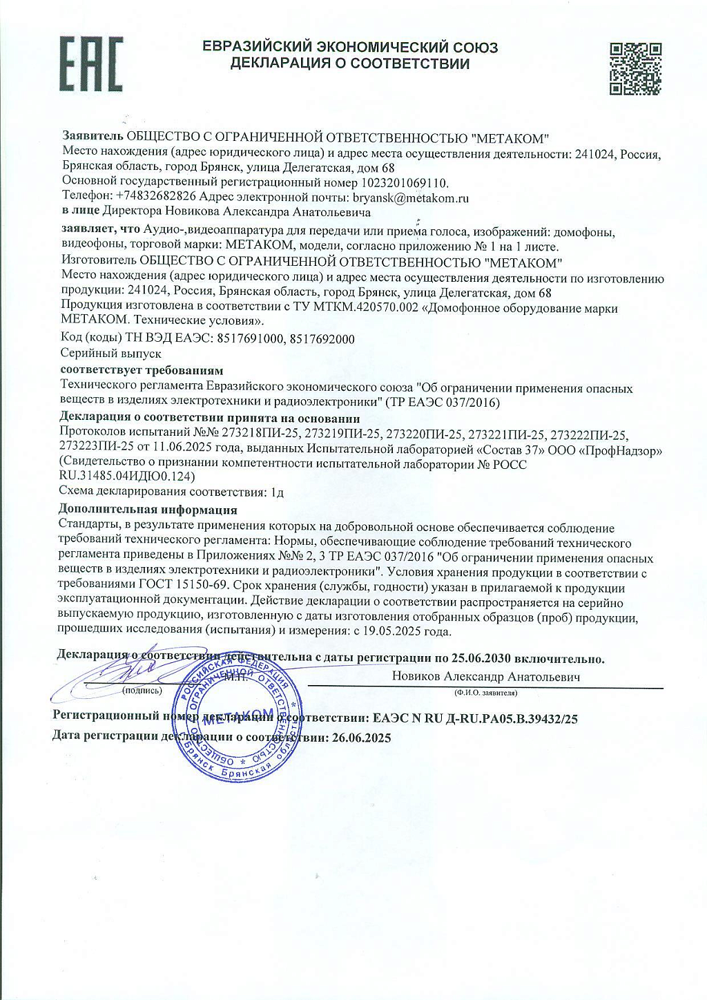 Блок вызова представляет собой специализированную микропроцессорную систему, предназначенную для установки в многоквартирных домах, офисах, а также для организации системы селекторной связи с числом абонентов до 20. В качестве абонентских ключей используются электронные ключи (далее ТМключи) METAKOM TM2002, МЕТАКОМ TM2003(A,B) или Dallas iButtontm – DS1990A. Домофон обеспечивает подачу сигнала вызова на ТКП абонента, дуплексную связь посетителя с абонентом, дистанционное открывание замка по сигналу от ТКП. Особенности прибора: прямая адресация абонентов; встроенный коммутатор на 20 абонентов; 2 уровня громкости вызывного сигнала, 3 варианта мелодии сигнала вызова; наличие режима автосбора ключей и т.д. Антивандальное исполнение блока вызова представляет собой специальную конструкция клавиатуры.
