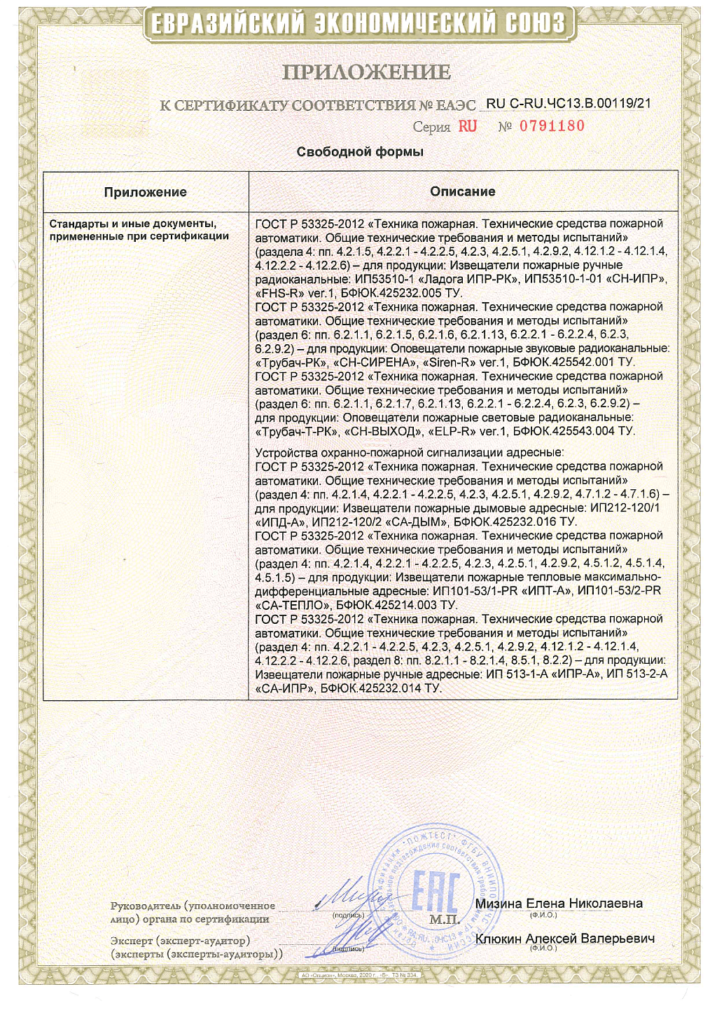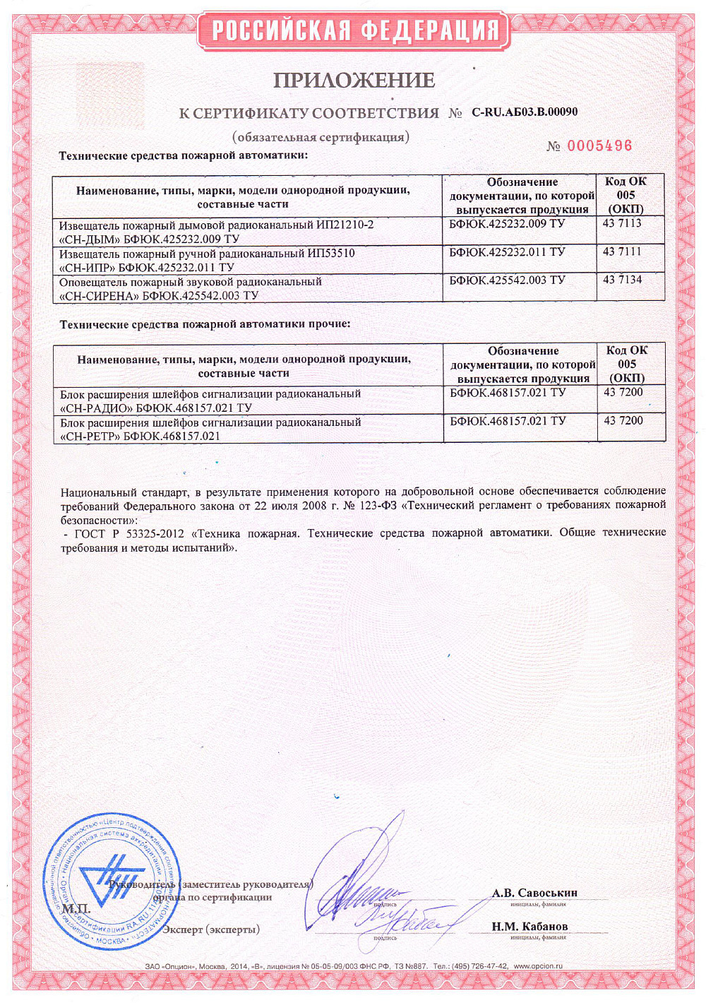Сертификат соответствия Радиопередатчик СН-Ретр для передачи радиоканальных сообщений в диапазоне частот 433,05—434,79 МГц Си-Норд (лист 2)