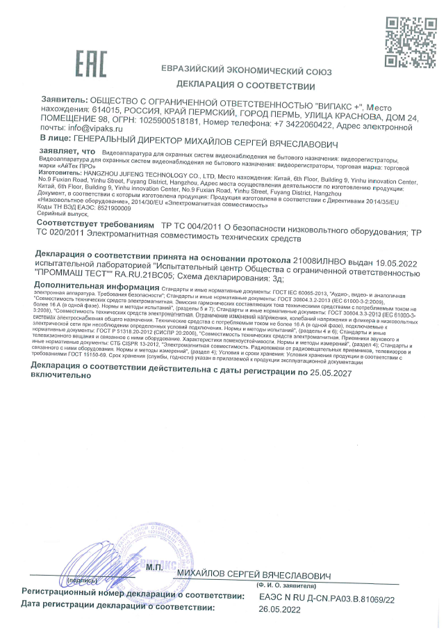 Smart-функцииПоддерживается аппаратная видео аналитика с видеокамер АйТек ПРО серии Respectable, в том числе модули детекции движения и звука, пересечения линии, подсчета посетителей, охраны периметра, оставленных / исчезнувших предметов, выделение областей интереса (ROI)