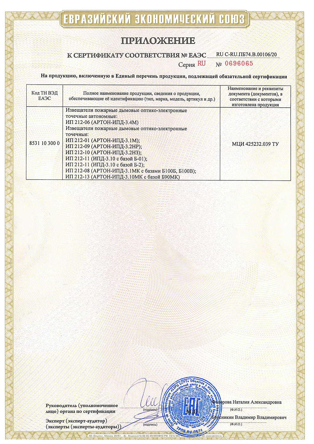 • Тип извещателя Оптико-электронный