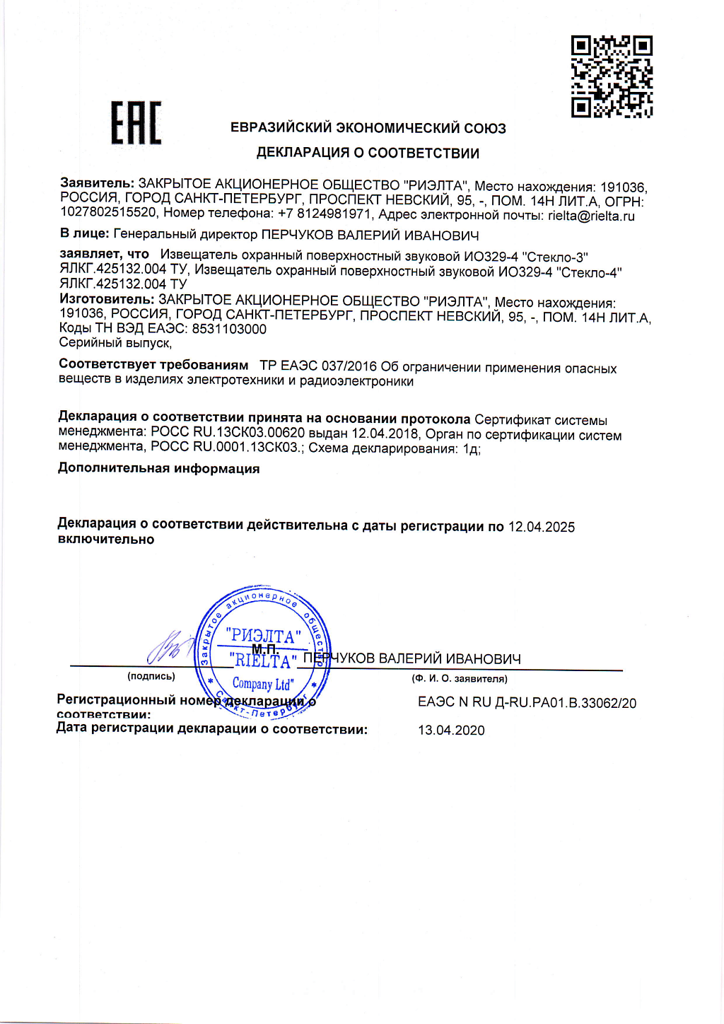 Извещатель Стекло-3 (ИО 329-4) Риэлта купить в Екатеринбурге в компании ВИПАКС.