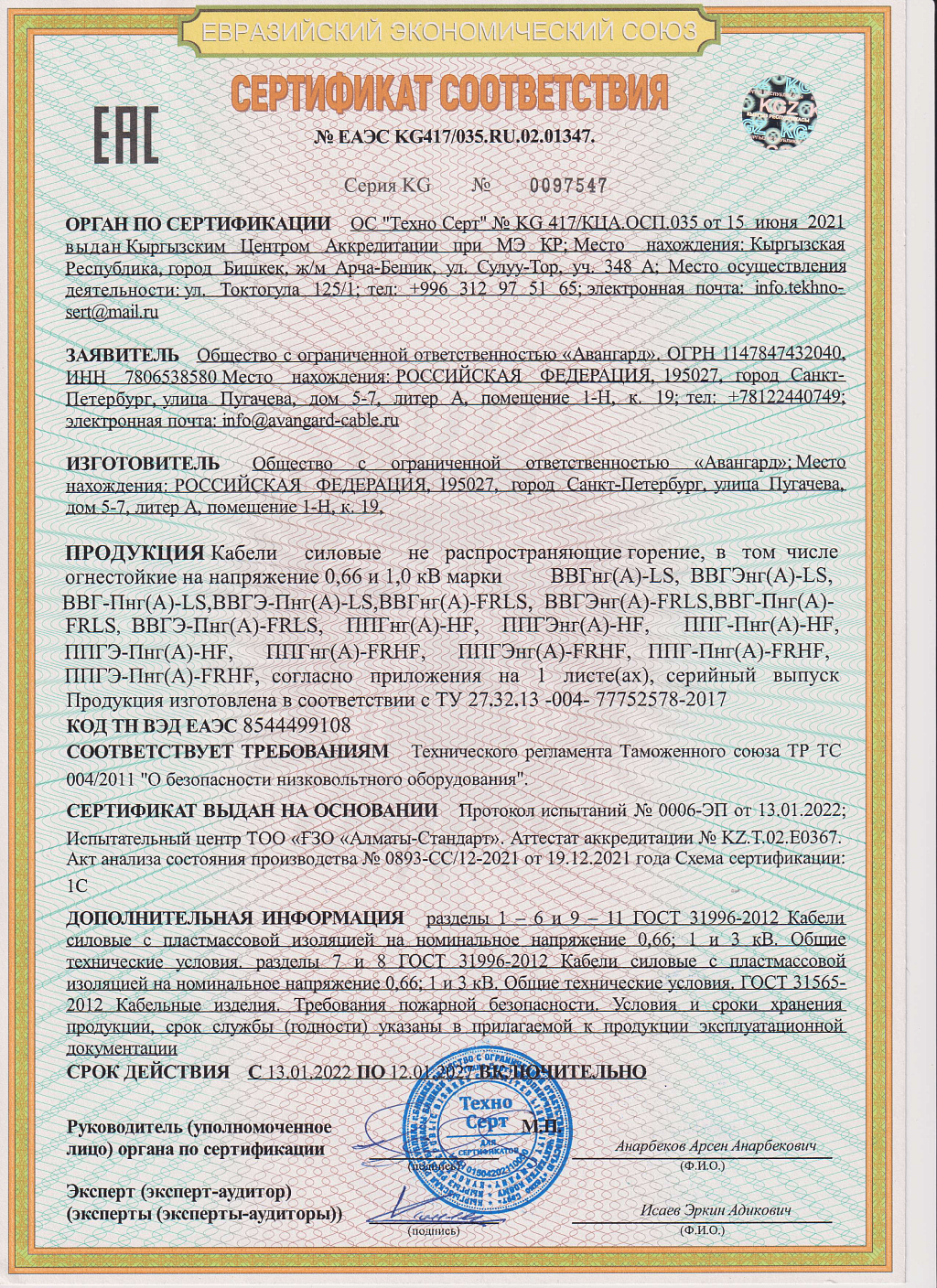 Кабель ВВГнг(А)-FRLS 5x1.5 (ОКЛ) Авангард купить в Екатеринбурге в компании ВИПАКС.