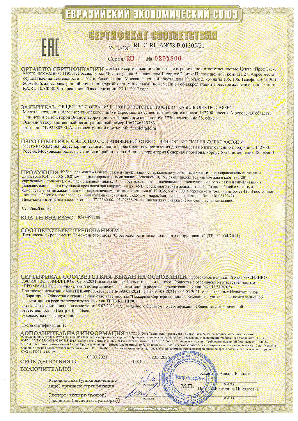 • Производитель Кабельэлектросвязь