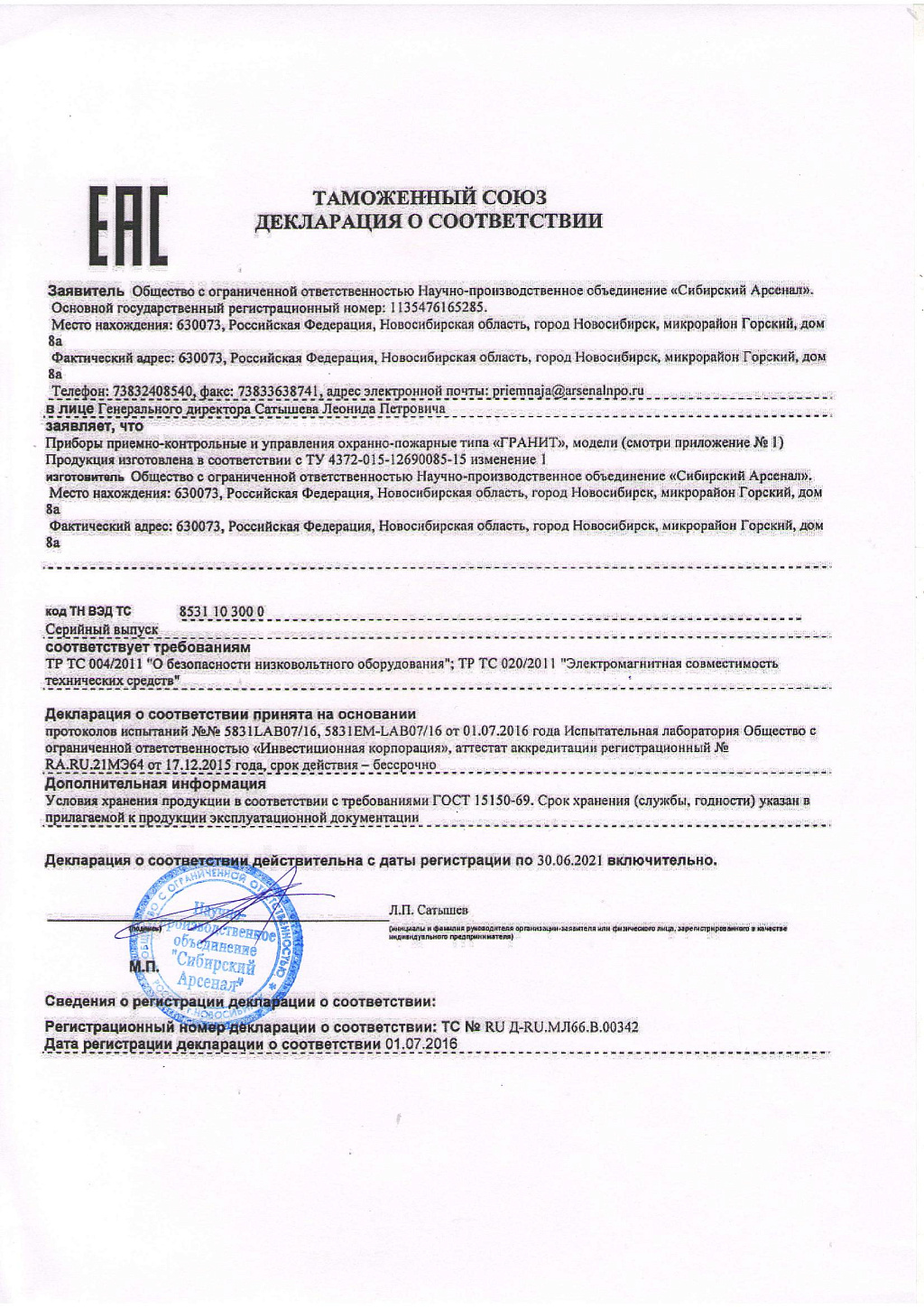 Прибор приемно-контрольный и охранно-пожарный Гранит применяется для охраны различных объектов, оборудованных электроконтактными и токопотребляющими охранными и пожарными извещателями. Особенности прибора: 7 встроенных тактик применения. Гибкая настройка через программное обеспечение — конфигуратор ARS-prog. Подключение к компьютеру через разъем microUSB; прибор работает автономно либо передает на пульт извещения размыканием «сухих» контактов реле ПЦН; способы постановки на охрану и снятия с охраны: электронными ключами Touch Memory, кнопками на панели индикации и управления прибора; два входа для подключения считывателей ТМ; и т.д. Прибор имеет возможность электропитания прибора от внешнего источника питания +12 В. Устройство предназначено для установки внутри охраняемого объекта и рассчитан на круглосуточный режим работы