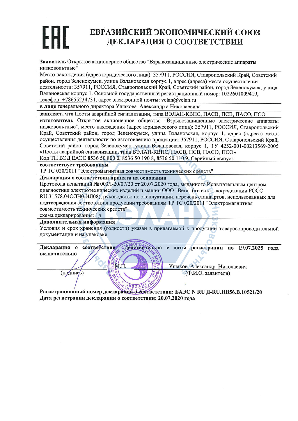 Пост ПАСВ1-П-75-1Ж1К В1 аварийной сигнализации взрывозащищенный Вэлан купить в Екатеринбурге в компании ВИПАКС.
