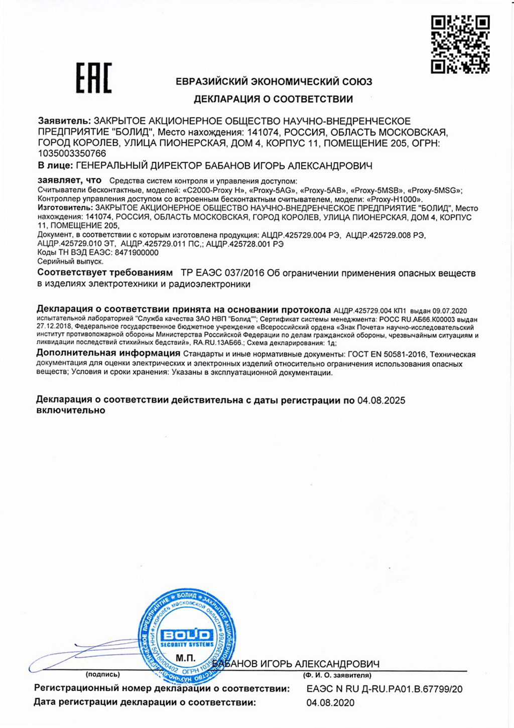 Считыватель С2000-Proxy-Н (накладной) BOLID купить в Екатеринбурге в компании ВИПАКС.