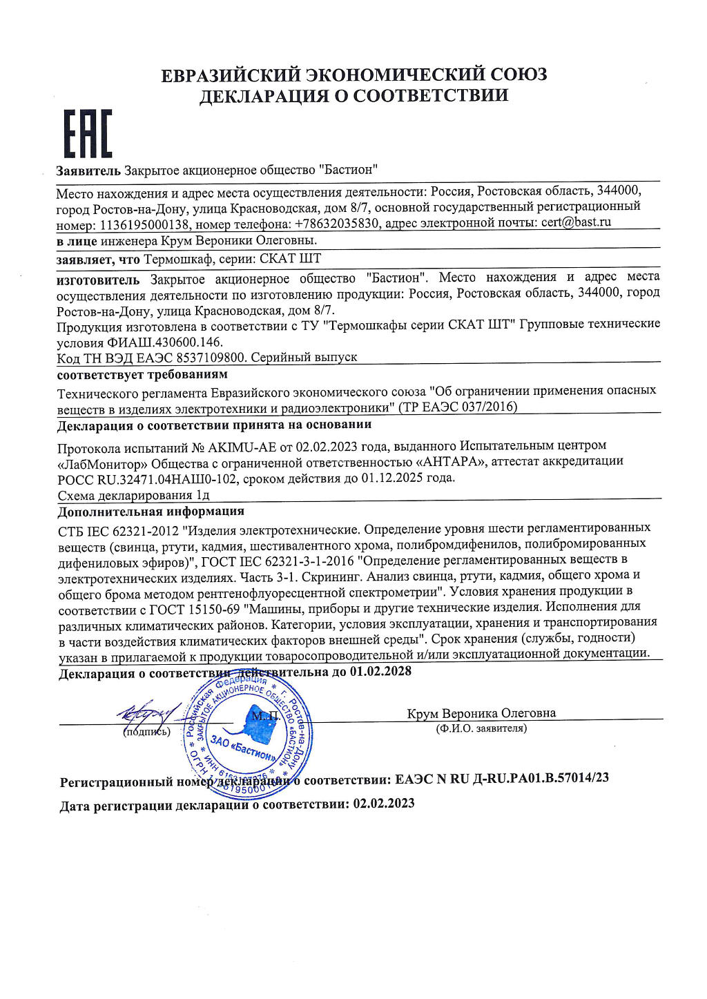Специализированный уличный термошкаф с обогревом и вентиляцией. Металлический утепленный уличный корпус 500х250х400мм с классом защиты IP54. Температурный диапазон -65С - +50С. Климатическое исполнение УХЛ 1. Встроенный УЗИП II класса. Двухполюсный автоматический выключатель для защиты от КЗ и перегрузки. Встроенный цифровой контроллер ЦКТ-01 для управления климатом и защиты оборудования. Высокая точность поддержания температуры благодаря использованию цифрового термодатчика DS18B20. Защита от холодного пуска и перегрева оборудования. Настройка поддерживаемой температуры, а также температуры защиты от холодного пуска. Нагреватель мощностью 60Вт. Вентилятор производительностью 55 куб.м/ч. Информирование типа "сухой контакт" при авариях или вскрытии шкафа. Гарантия 5 лет.