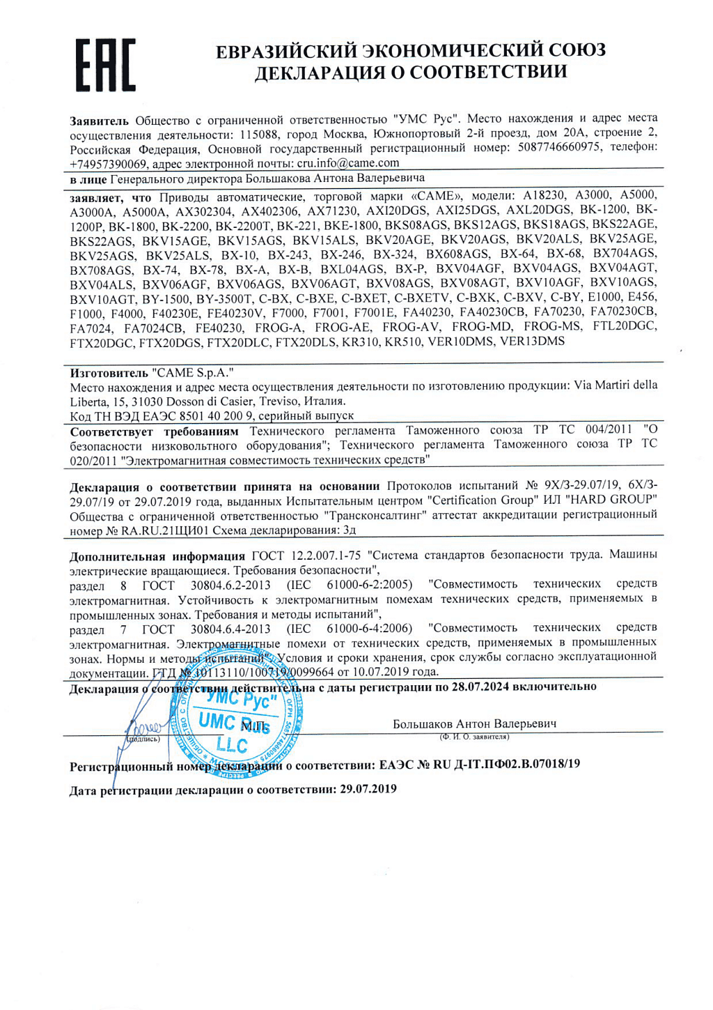 Привод 001A3000A CAME купить в Екатеринбурге в компании ВИПАКС.