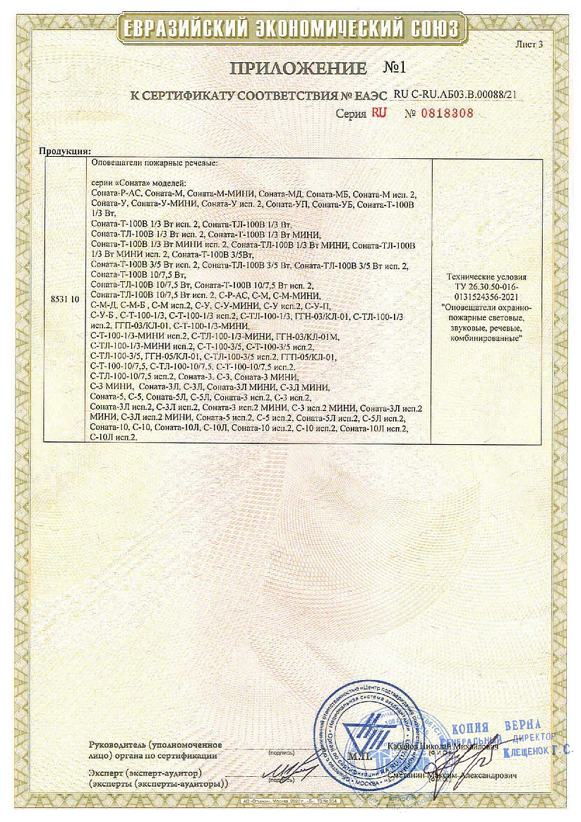 Сертификат соответствия Оповещатель Молния 12 В Выход ВИСТЛ-М (лист 3)