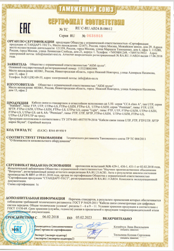 Купить в Екатеринбурге Кабель FTP 4PR 24AWG CAT5e OUTDOOR внеш Premium Skynet (4х2х0.51 Cu) (1693121) в компании ВИПАКС.